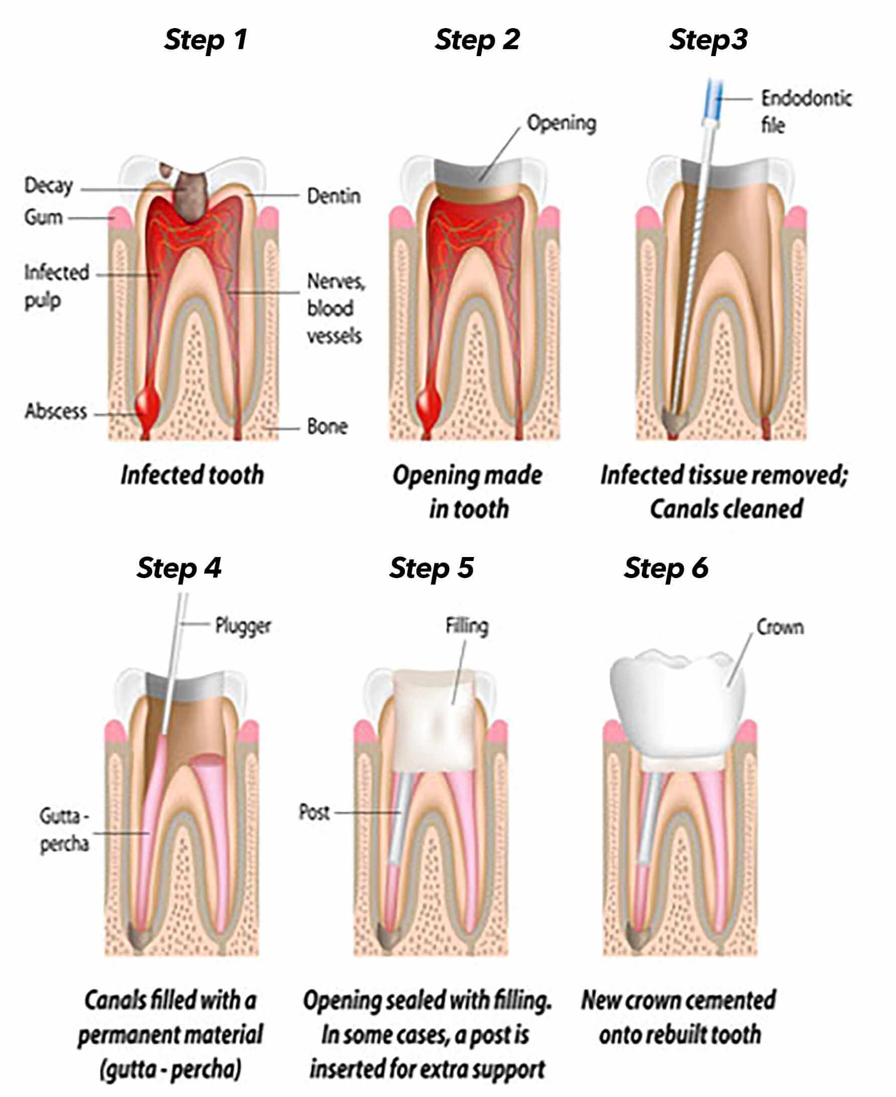 Root canal is treatment to repair and save a badly damaged or infected tooth instead of removing it. The procedure involves removing the damaged area of the tooth (the pulp) and cleaning and disinfecting it, then filling and sealing it. Millions of teeth are treated and saved this way each year, relieving pain and making teeth healthy again. Getting a root canal is relatively painless and extremely effective. You‘ll be back to smiling, biting and chewing with ease in no time.